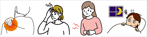 ○ 頭痛 ○ 肩こり ○ 慢性便秘 ○ 不眠症